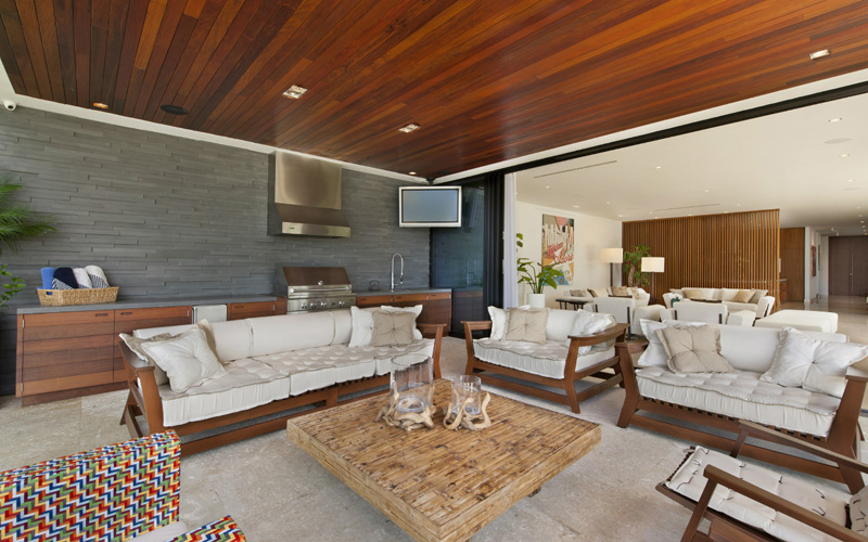 Palm Beach Interior design – Natural decors are also seen in the house just like this outdoor space with an outdoor kitchen that made use of wood for the ceiling and furniture. But aside from wood, note that Lego like seats on the side that add some color to the area. Wood can be natural, modern, contemporary and eclectic interior design. Look for a Palm Beach interior designer today!